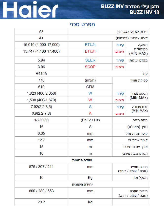 ✔ טכנולוגיית אינוורטר עם פעולה אמינה וחסכונית בחשבון החשמל